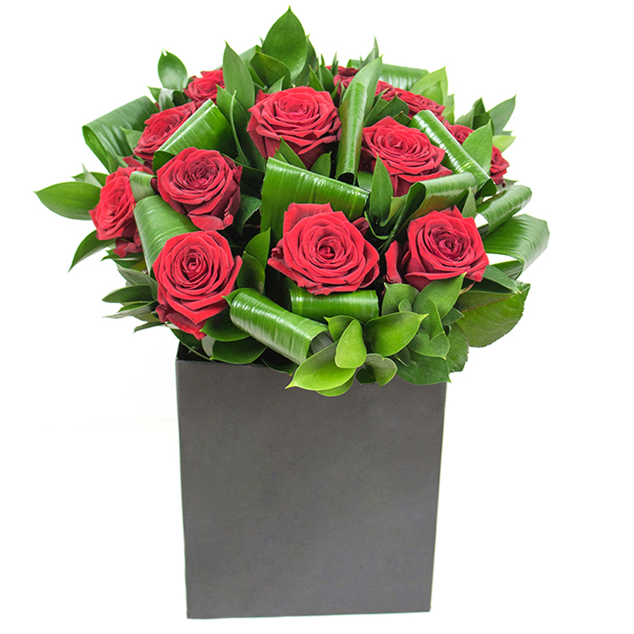 Immerse yourself in opulence with our Red Rose Bouquet, an eloquent combination of vibrant red roses and sophisticated greenery from aspidistra leaves and ruscus. Each bloom is expertly hand-picked to ensure unparalleled quality and brilliance.